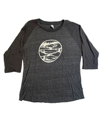 Alternative Shirt Womens Large Charcoal Fish Art Artsy Raglan Streetwear Ladies