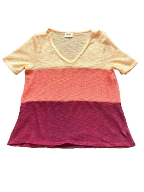 Bibi Sweater Womens Large Peach Wine Colorblock V-neck Open Knit Lightweight USA