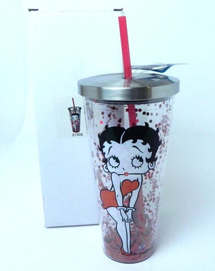 Betty Boop Glitter Filled Acrylic Tumbler Cup with Lid/Straw 20oz NEW