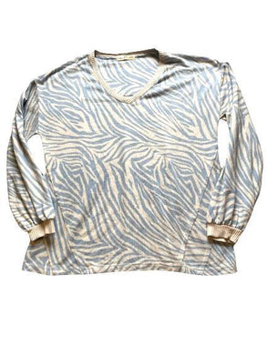 C&C California Sweater Womens Large Zebra Stripes V-Neck Spandex Stretch Ladies