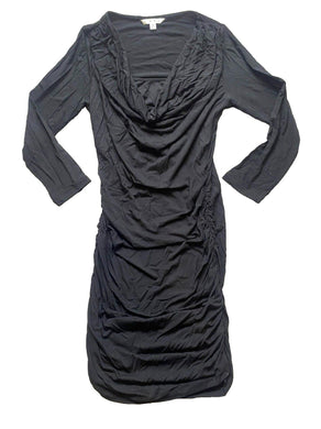 Cabi Dress Womens Extra Small Black Ruched Cowl Neck Pencil Sheath Rayon Spandex