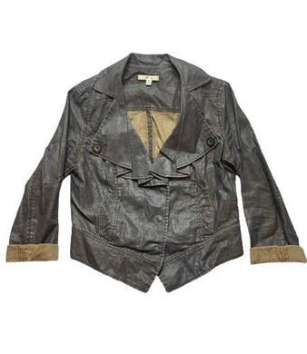 Cabi Jacket Womens Medium Dark Brown Waxed Linen Moto Biker Boho Grunge Cropped
