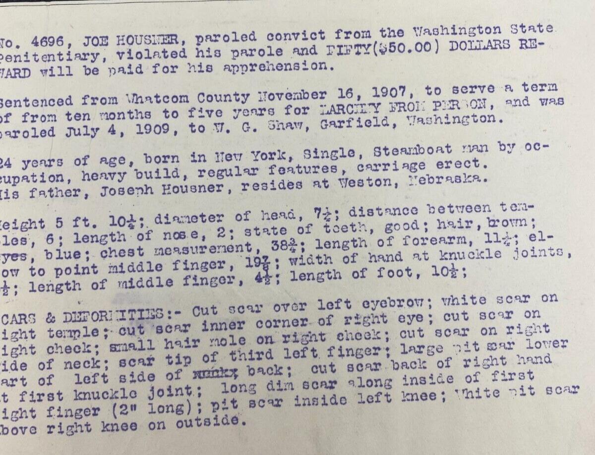 1909 Escaped Convict $50.00 Reward Wanted Poster Washington Penitentia – Up4Drea