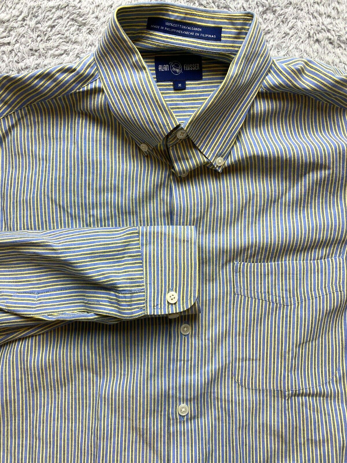 Alan Flusser Shirt Adult Medium Blue Yellow Striped Pocket Casual Cuffs Mens