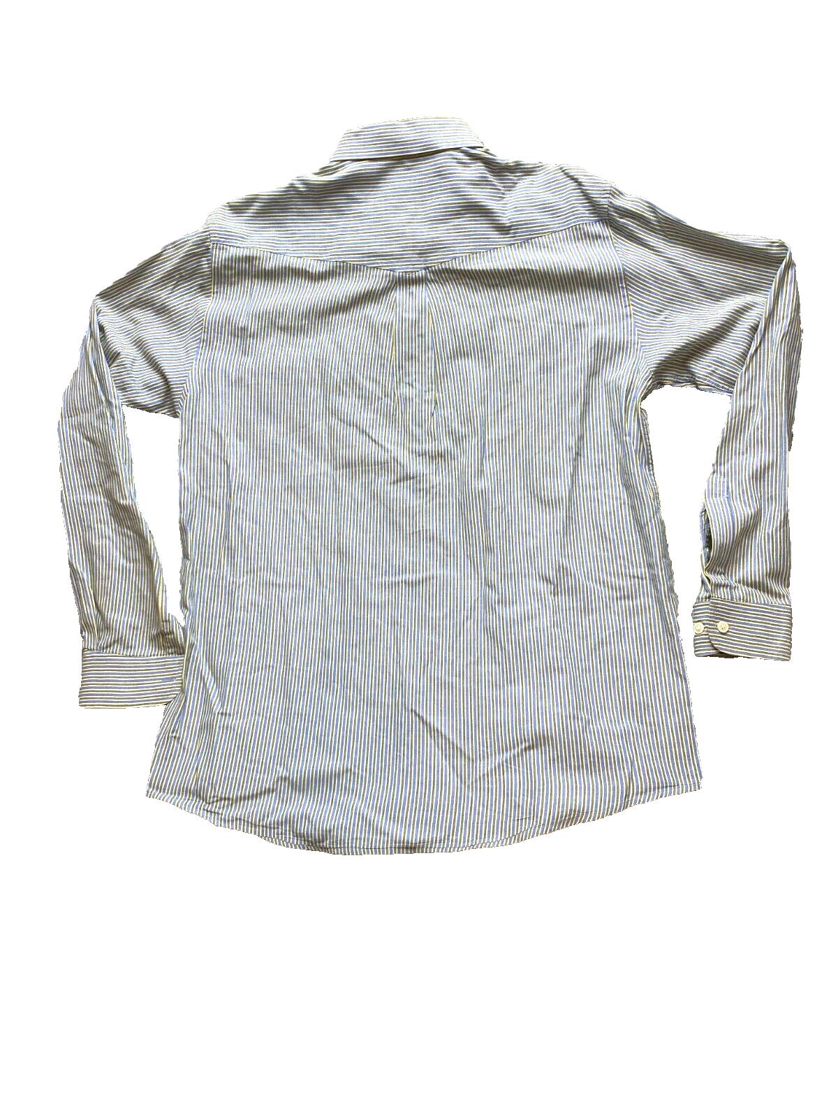 google-site-verification=e1waUdhDiv9f4Q7pNog9eI_h0C7MfHK-tzbzZKn_ids Alan Flusser Shirt Adult Medium Blue Yellow Striped Pocket Casual Cuff – Up4Drea