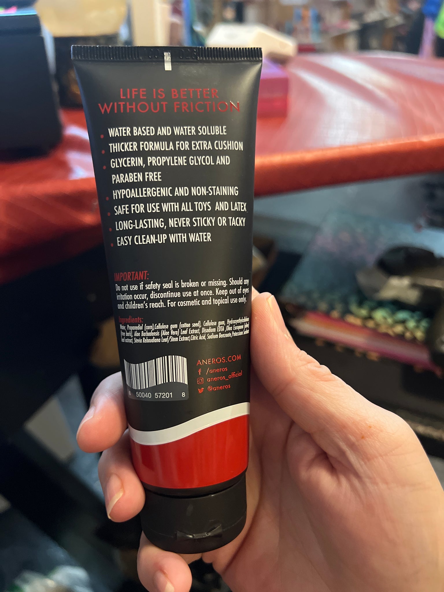 Aneros Sessions 4.2 fluid ounces Gel from Aneros Toys. Never sticky or pasty. Water based personal lubricant. Glycerin free and paraben free. Hypoallergenic and paraben free. Latex, rubber and plastic compatible. Compatible with Sicicone friendly. Never sticky or tacky. Our favorite gel formula, thick personal lubricant! Aneros Sessions Gel Lubricant is packaged to be a sleek pairing with your favorite Aneros prostate product! This is a water based lubricant that is thicker than most standard water based lubes. It is made by Sliquid so you can trust that it’s a safe, natural lubricant with good for you ingredients that is safe for all bodies but especially for sensitive bodies and sensitive skin. Why a thick lubricated gel? Well, it stays in place really nicely when you squirt it on toys or penises, and does not run down the sides immediately. It also provides added cushion for sensitive body tissues during friction or rougher play. The thickness of this lube makes it one of the best water based lubricants for anal sex. Do not worry, it can be used for all types of sex play too. Added bonus it has virtually no taste or smell. Categories: Anal Toys, Erotic Body Lotions, Gels, Anal Lubes, Lotions, Sprays and Creams, Health and Beauty Aids. Aneros. 💋Up4Drea💋5540 Yadkin rd. Fayetteville, NC
