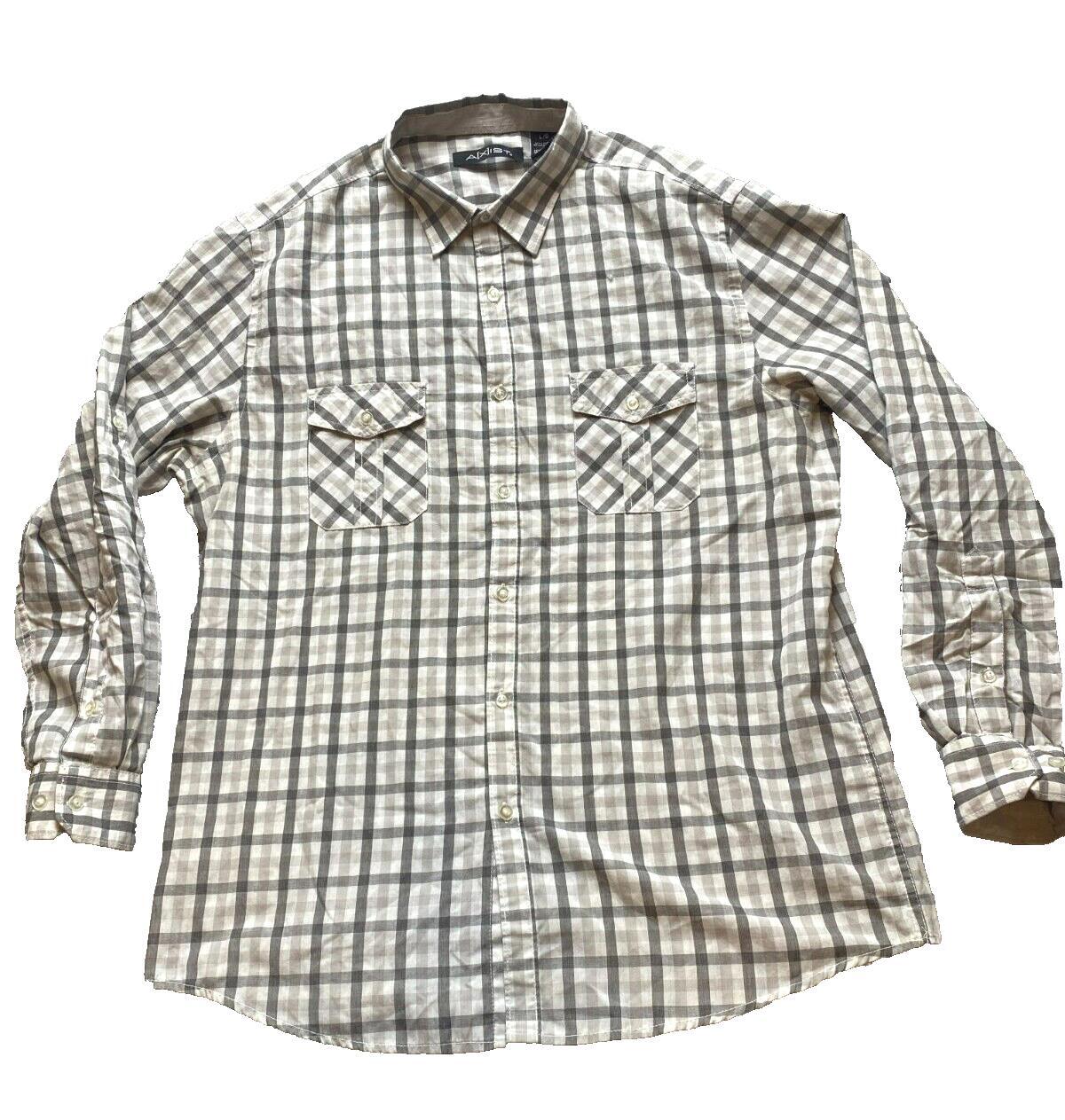 Axist Shirt Adult Large Gray Plaid Double Flap Pockets Button Up Casual Mens