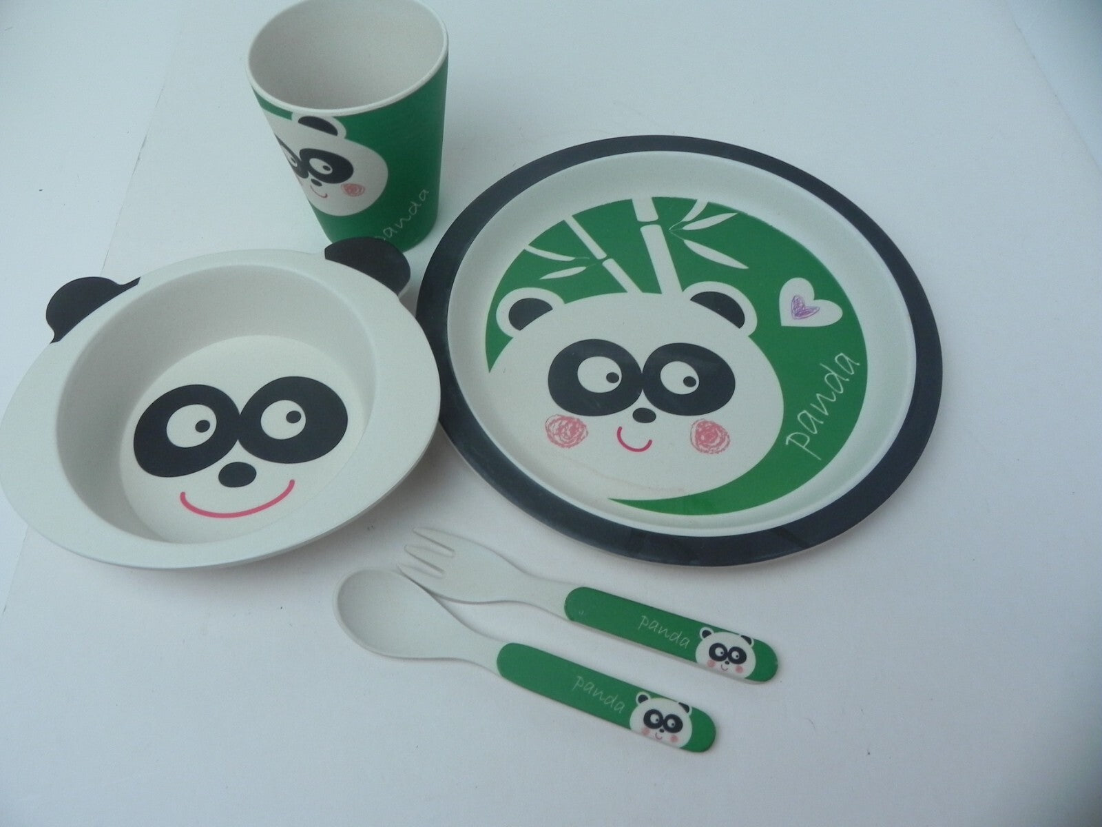 Bambooware Fibre Kids Dinner Sets 5 Pack Panda Green Eco Friendly Dinn – Up4Drea