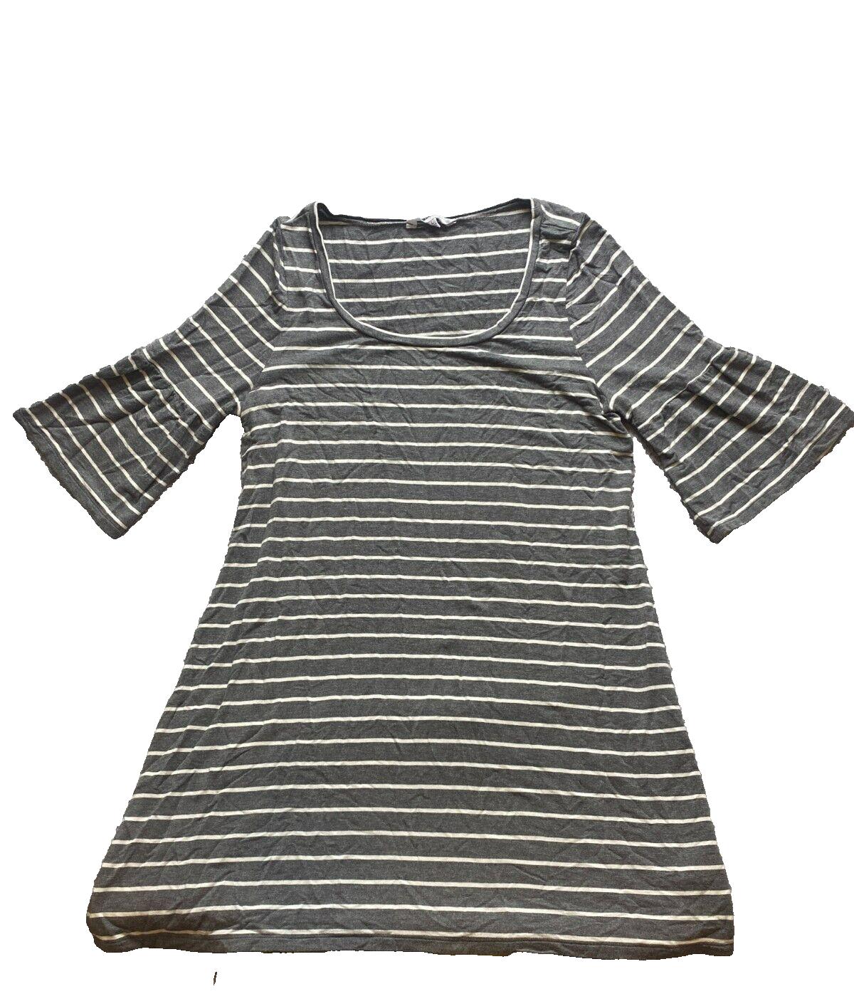 BB Dakota Dress Womens Large Gray White Bell Sleeve Hippie Spandex Viscose Tunic