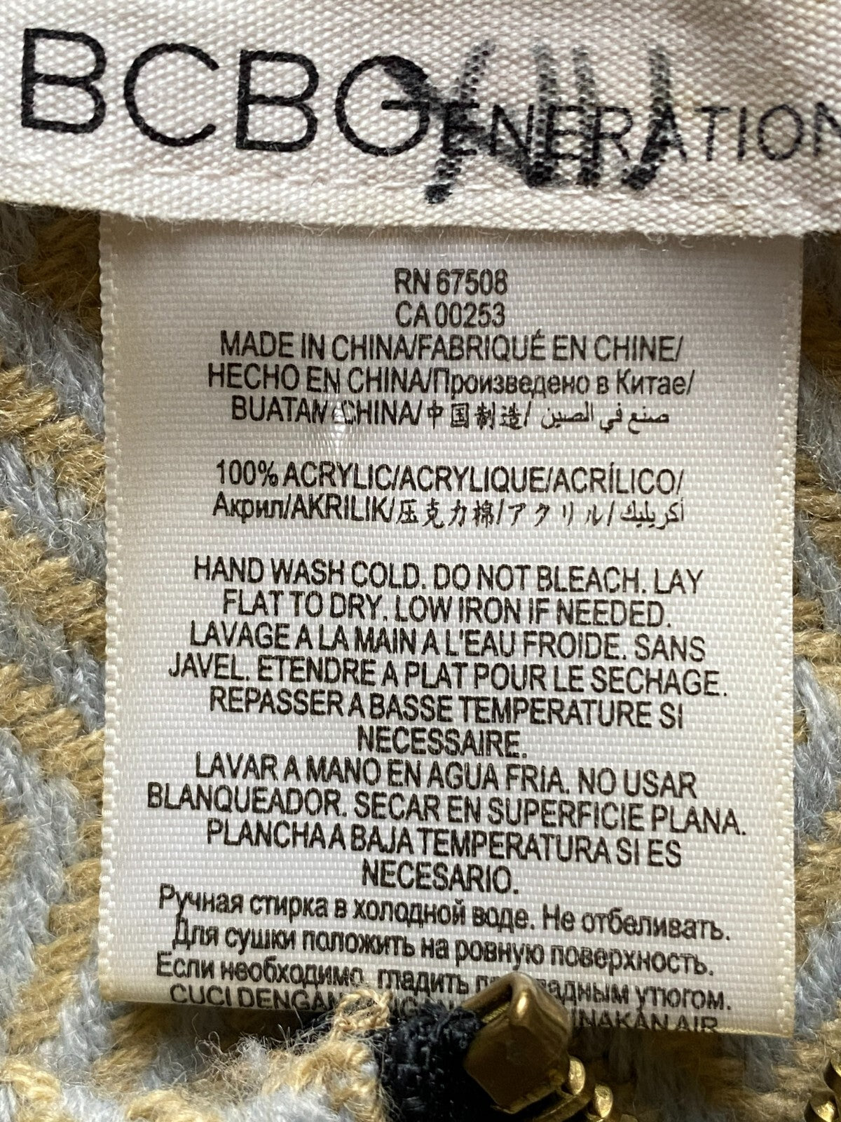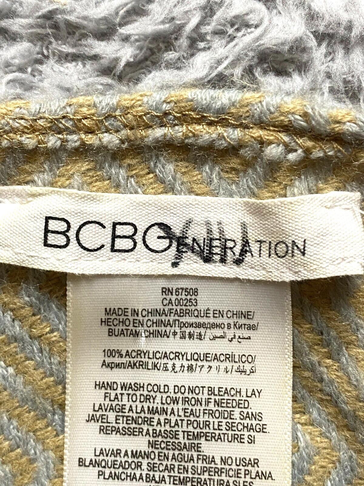 BCBGeneration Poncho Womens OSFM Tan Fringe Argyle Diamond Shawl 1/4 Zip Ladies