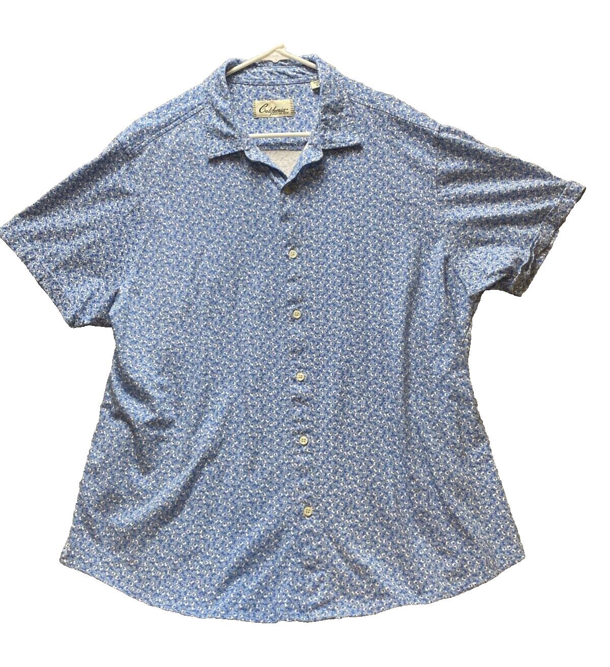 California Shirt Co Adult Extra Large Blue AOP Flower Button Up Hawaiian Mens