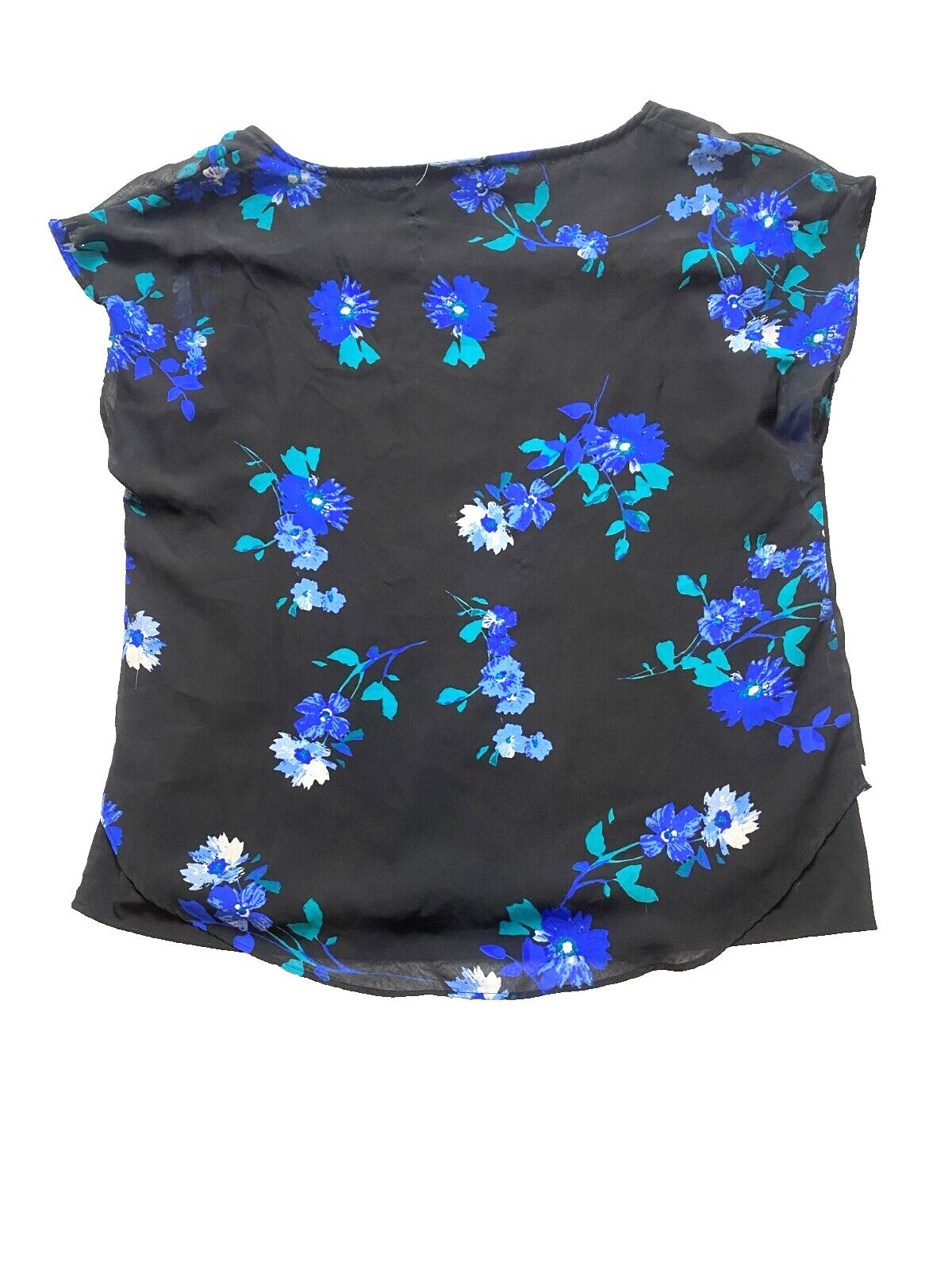 Calvin Klein Shirt Womens Large Black Blue AOP Floral Boho Lined Blouse Boxy