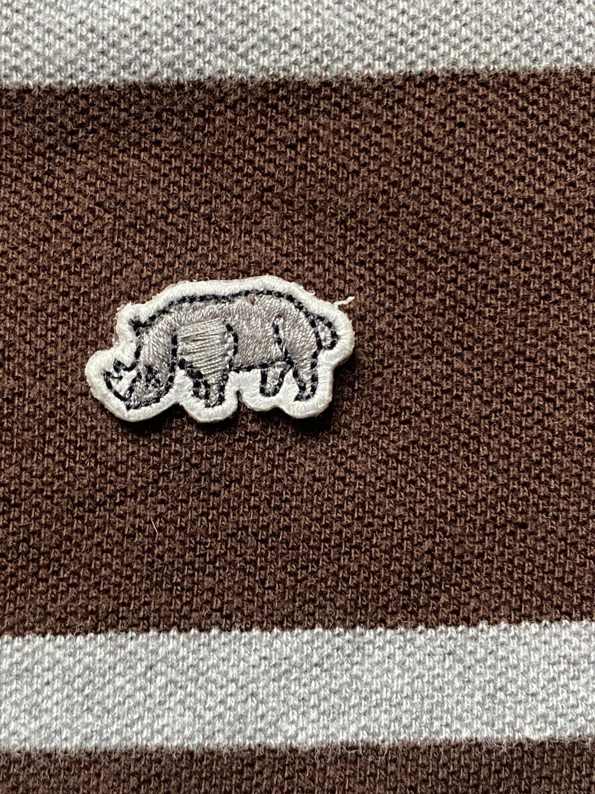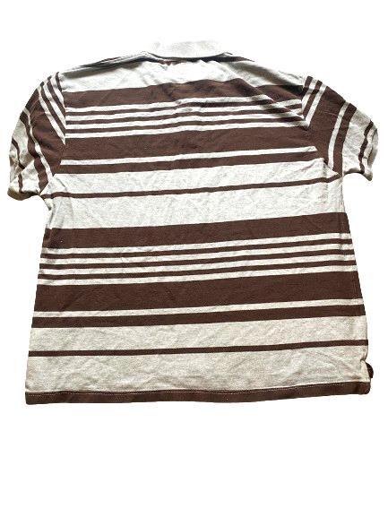 Ecko UNLTD Shirt Adult 3XL Brown Gray Striped Preppy Rhino Brand Patch Polo Men