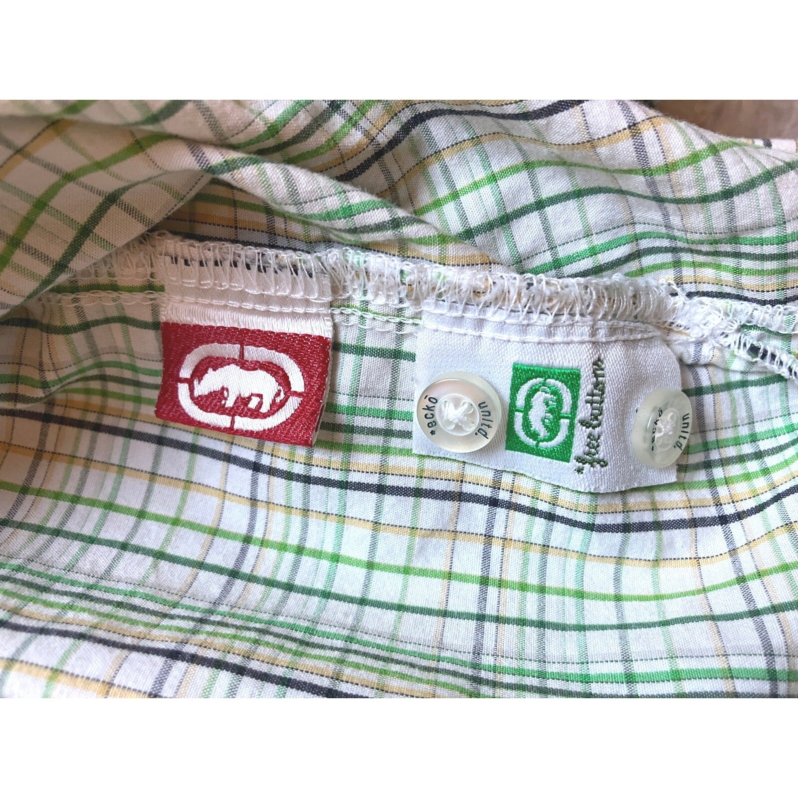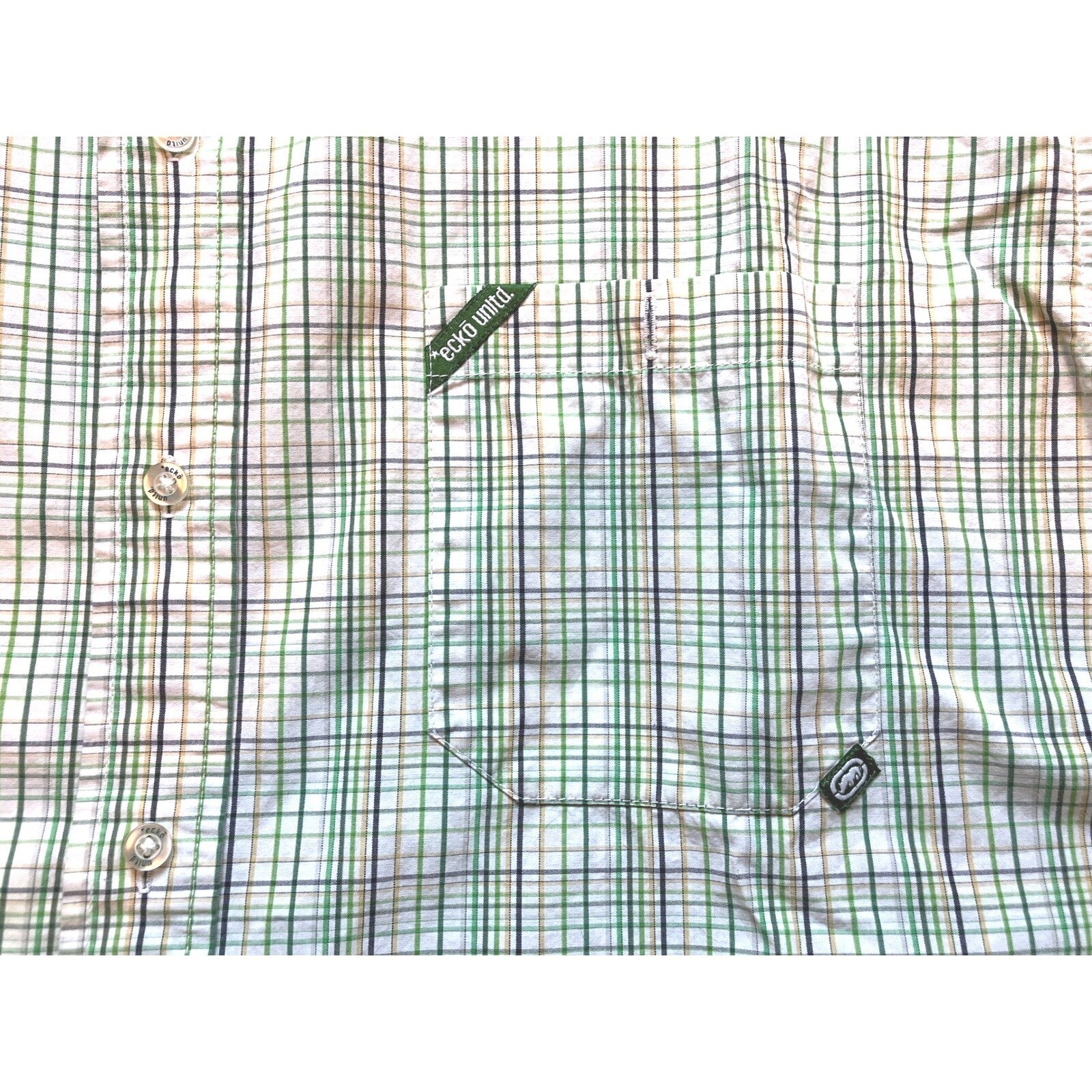 Keywords: Ecko Unltd, plaid shirt, button up shirt, short sleeve shirt, mens casual shirt, 2XL, green plaid, menswear, casual wear, button down, plaid, streetwear, vintage, retro