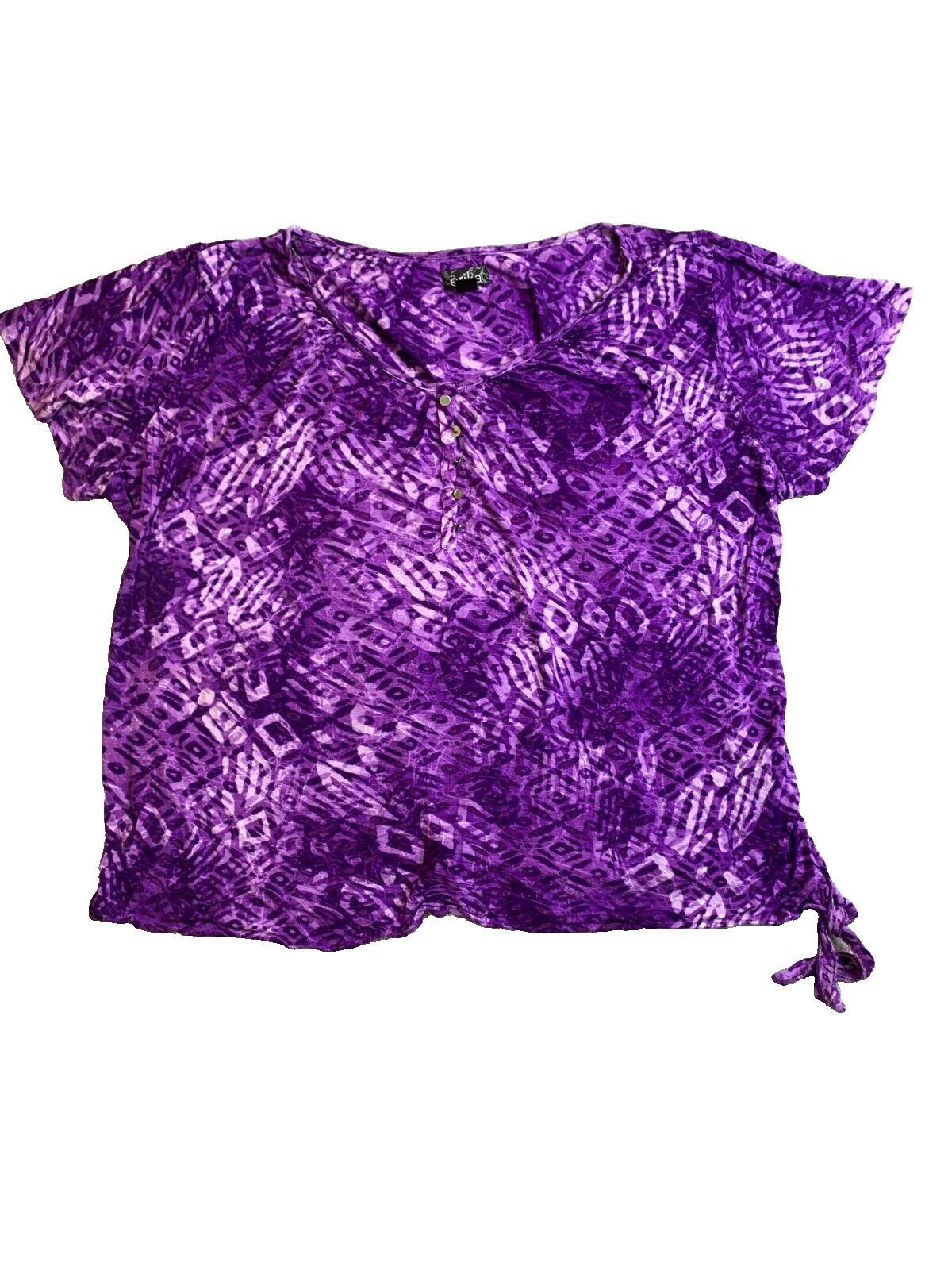 Erika Shirt Womens 2X Purple Geometric Vneck Tie Blouse Casual Comfort Plus Lady