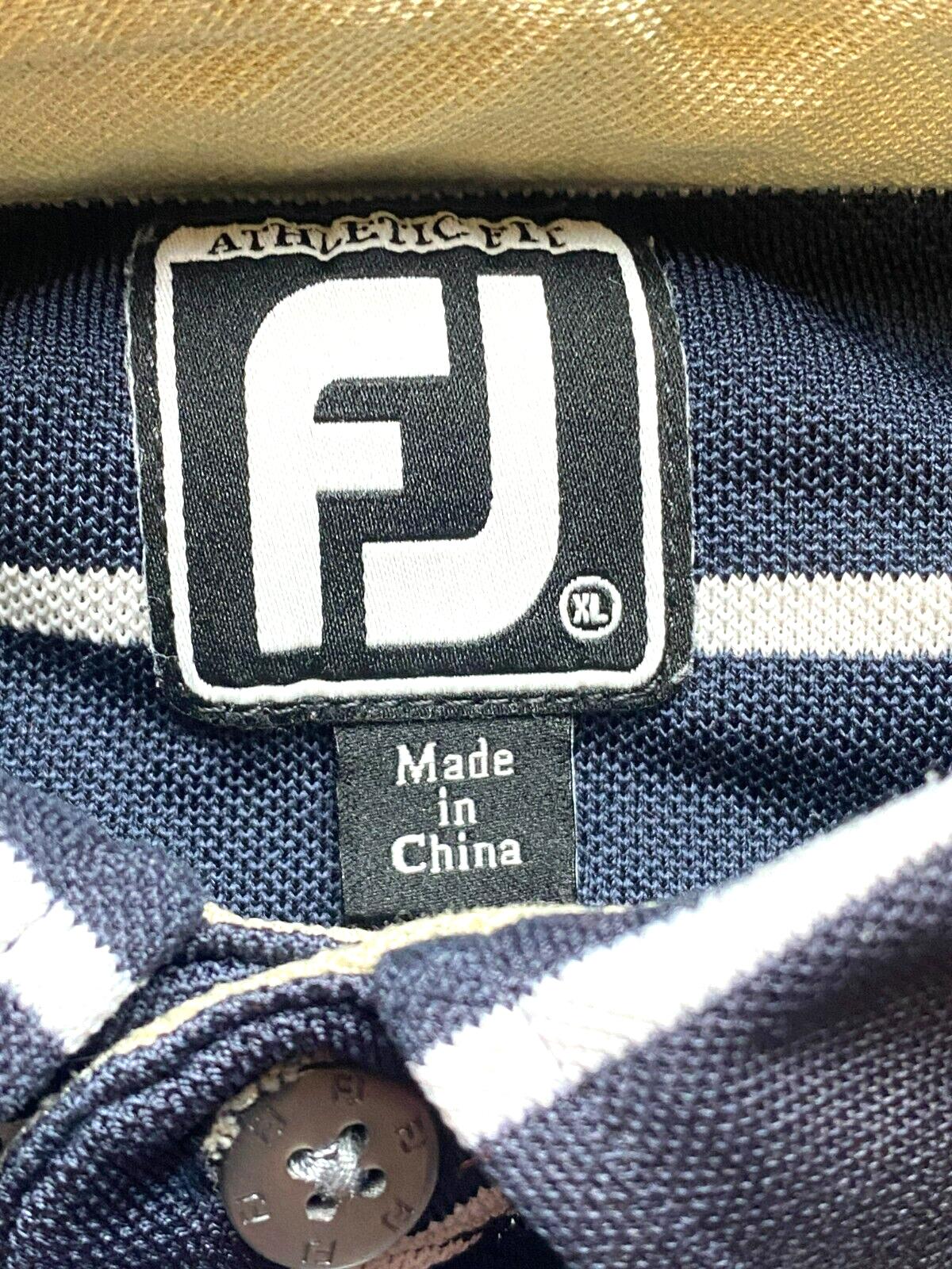 FJ FootJoy Shirt Adult Extra Large Navy Blue Striped Fripp Island Golf Polo Mens