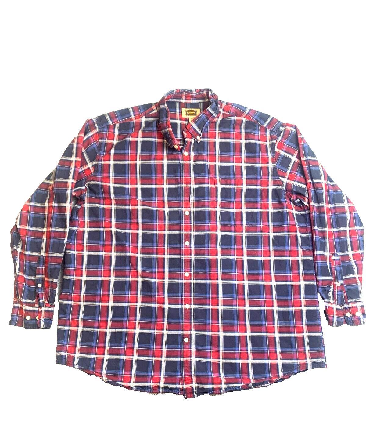 Foundry Supply Co Shirt Adult 2XLT XXL Tall Blue Red Plaid Button Up Casual Mens