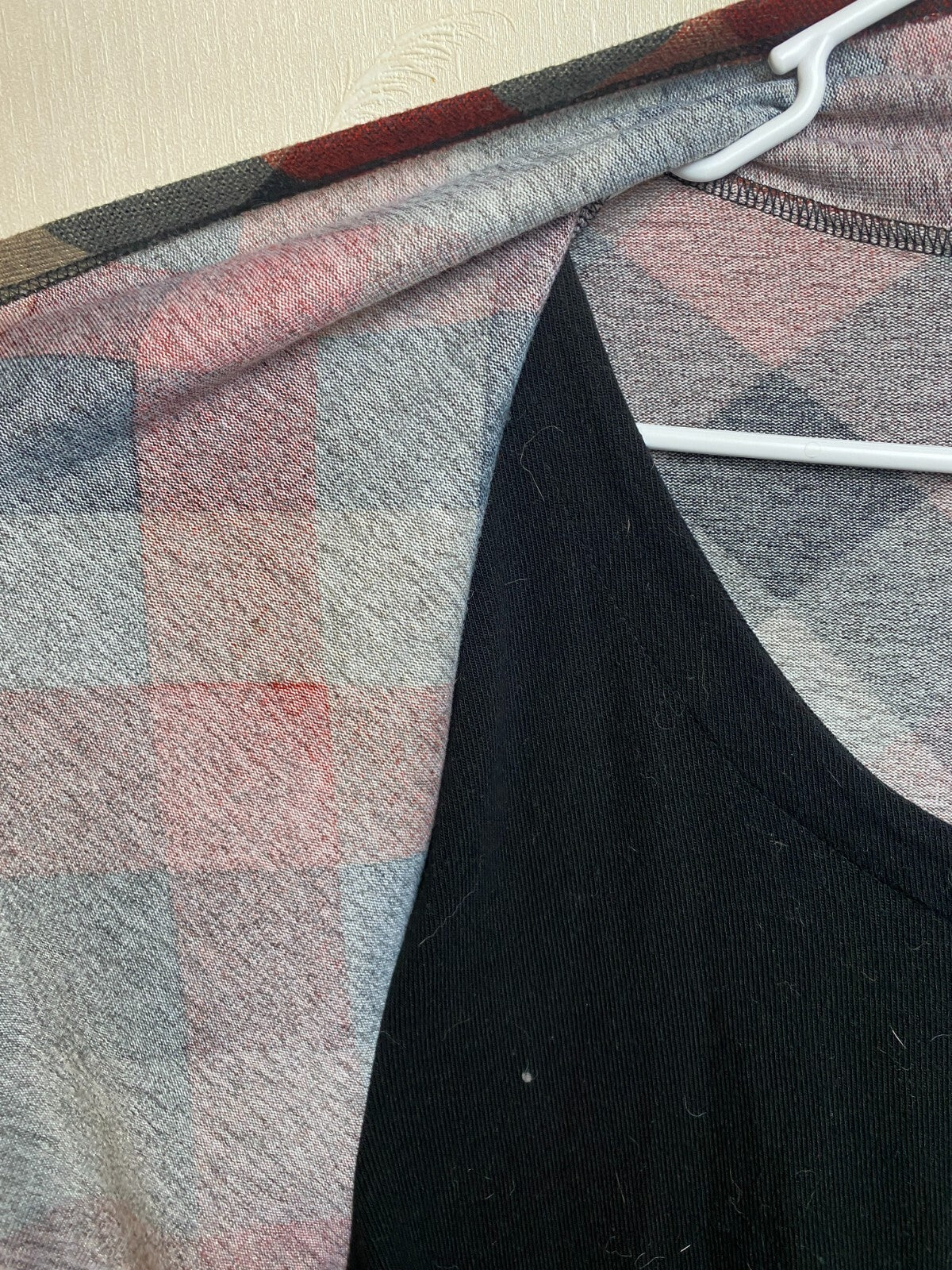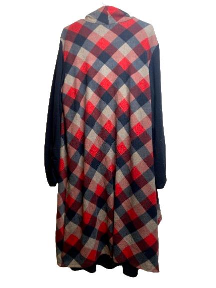 Haani Dress Womens 3X Plus Black Red Gray Plaid Lagenlook Cardigan Rayon Spandex