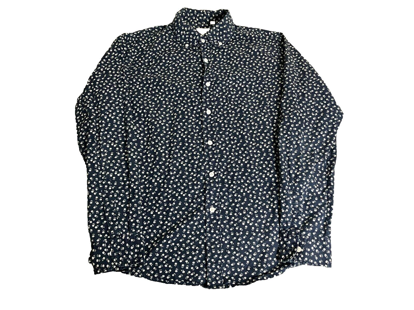 Holton Shirt Adult Medium Navy Blue AOP Flower Button Up Casual Canvas Cloth Men
