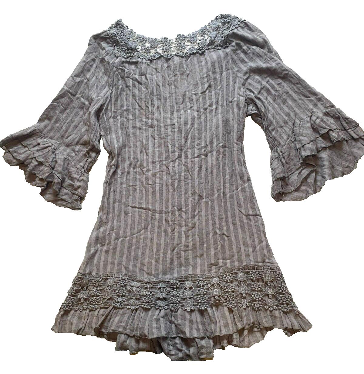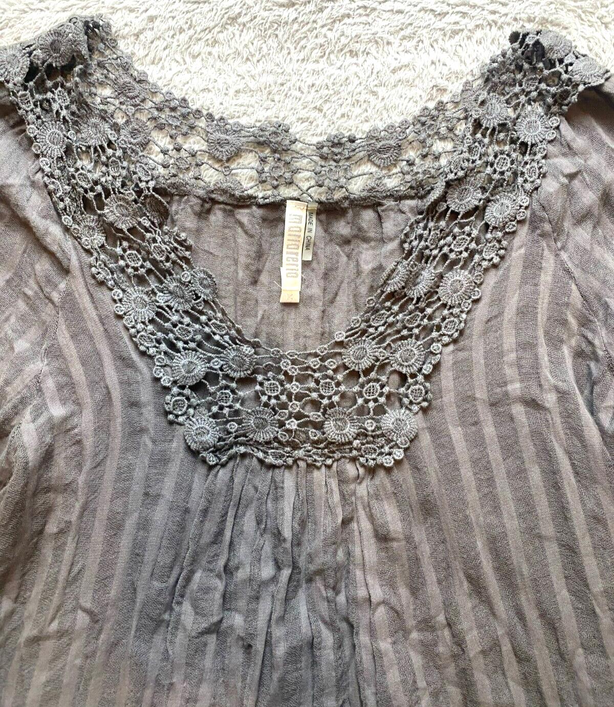 Monoreno Dress Womens Medium Gray Crochet Lace Ruffle Boho Peasant Hippie Ladies