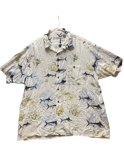Munsingwear Shirt Adult Extra Large White AOP Fish Camp Button Up Hawaiian Mens