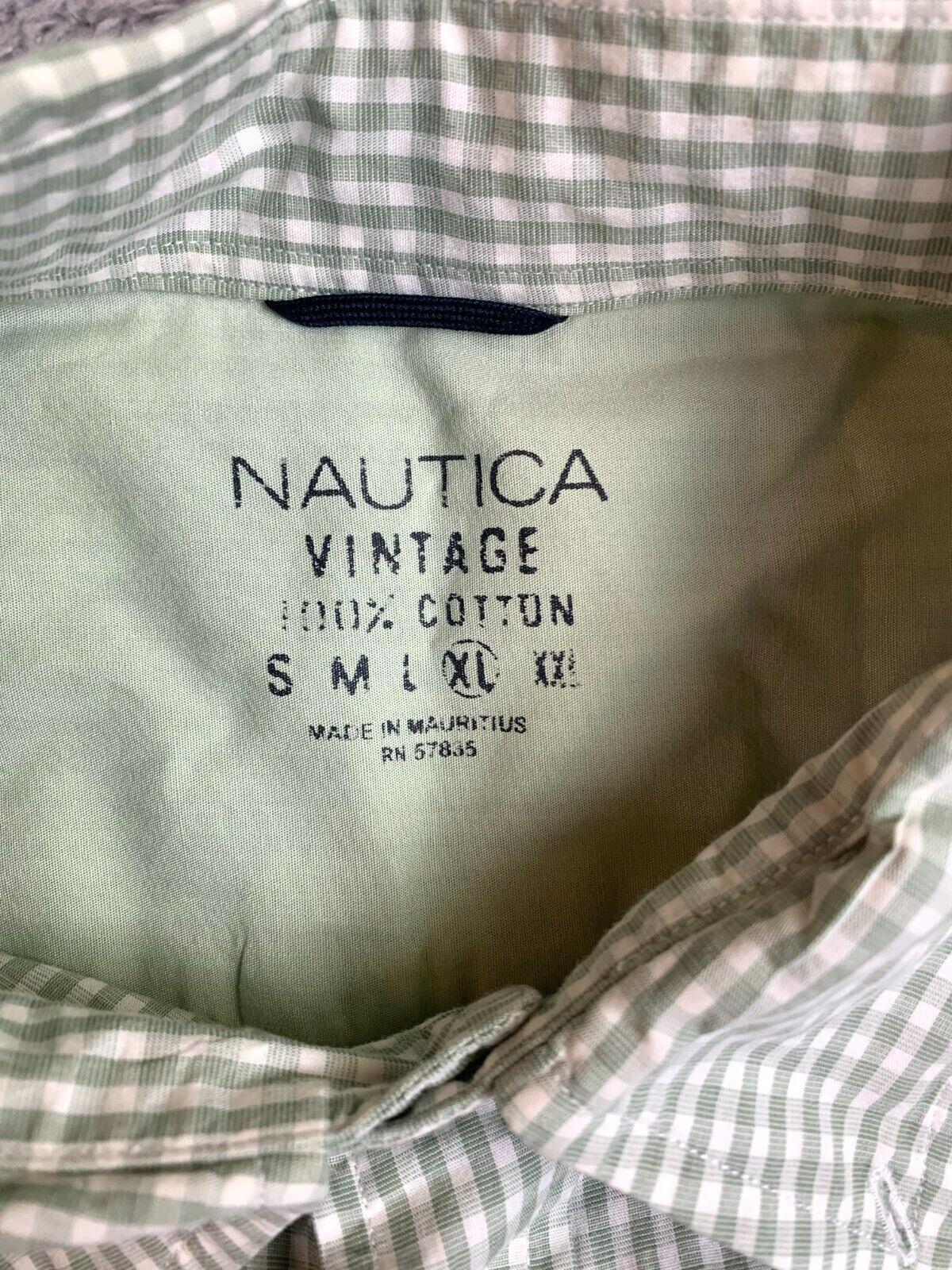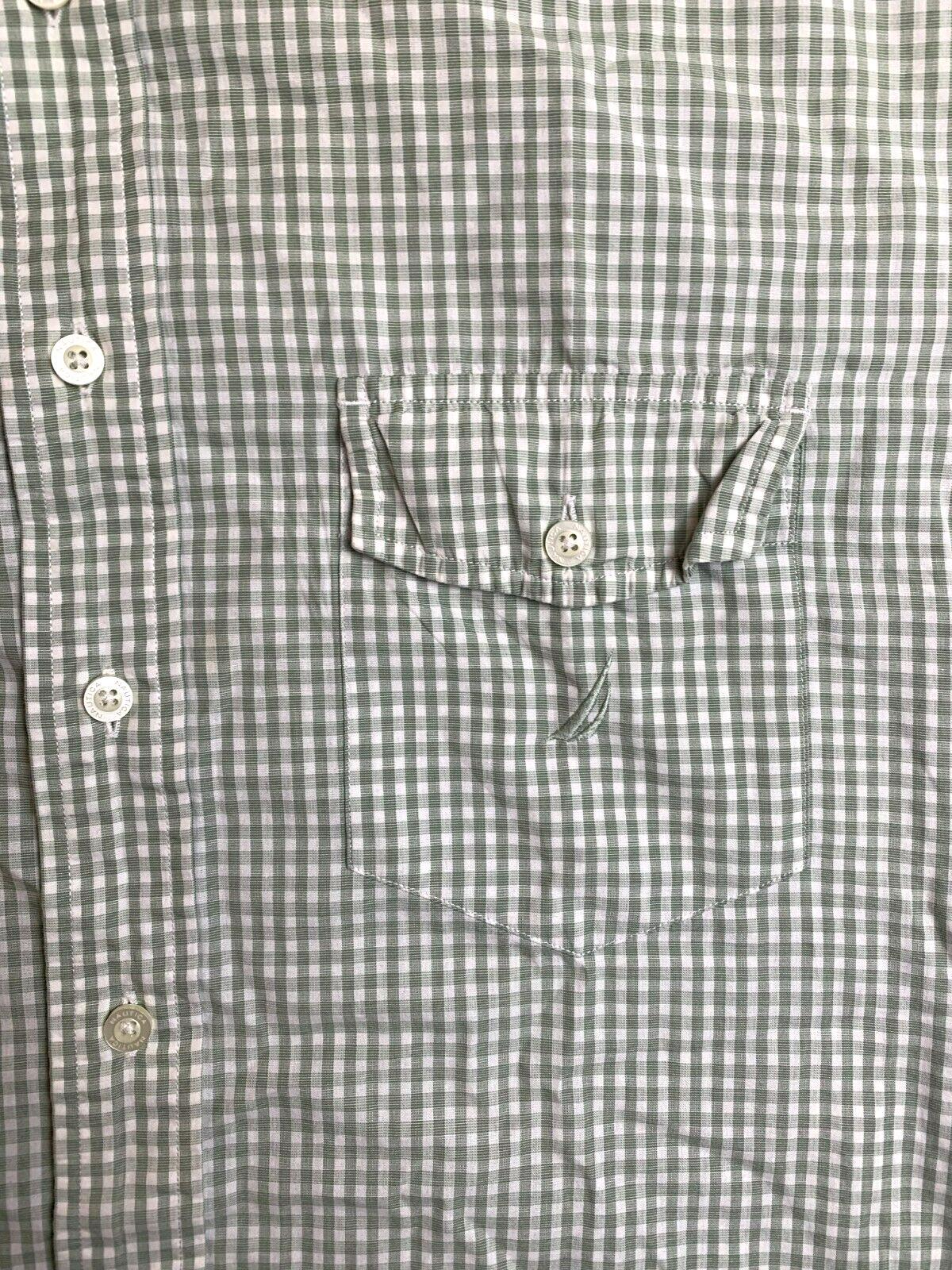 Nautica Shirt Adult Extra Large Green White Grid Checkered Button Up Casual Mens