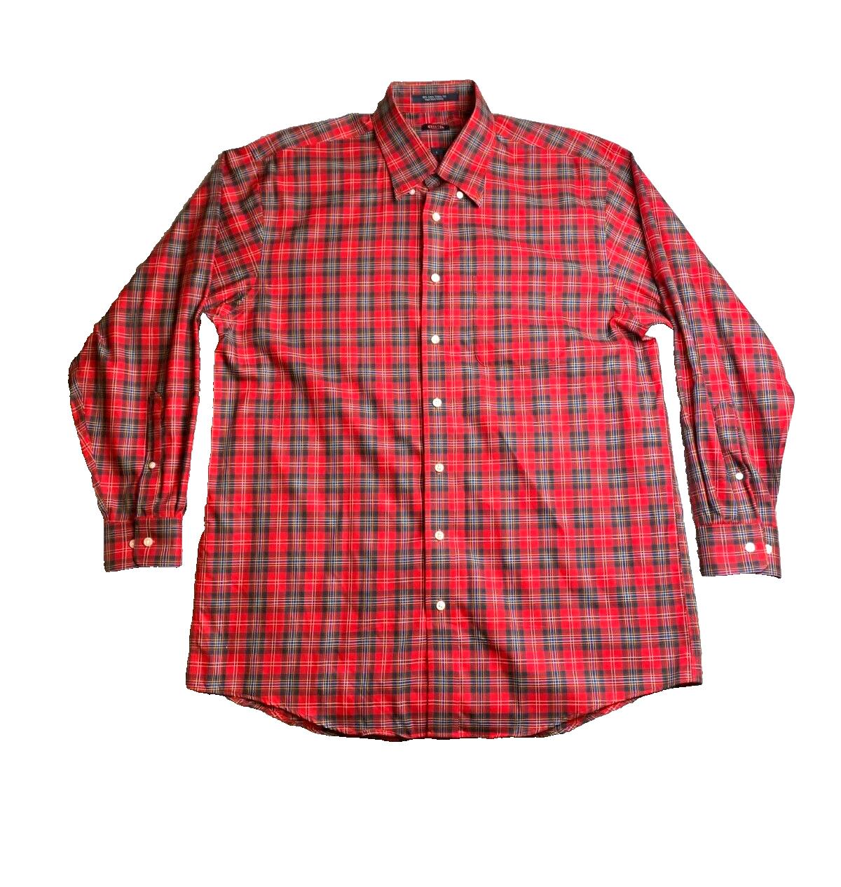 Overton Shirt Adult Large Red Green Plaid Wrinkle Free Button Up Casual  Mens