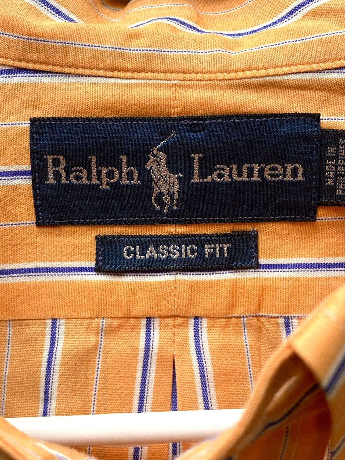 Ralph Lauren Shirt Adult Extra Large Striped Classic Fit Blue Pony Button Up Men