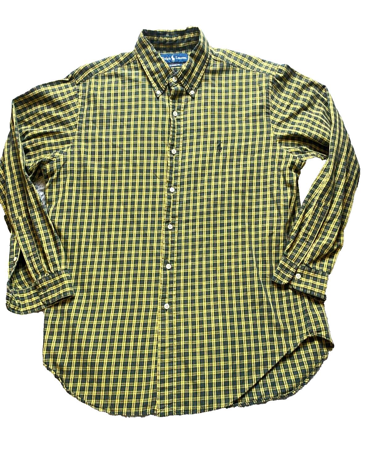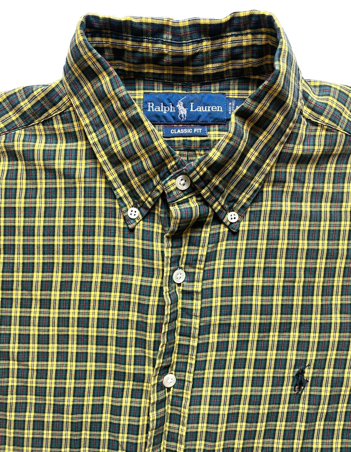 Ralph Lauren Shirt Adult Large Button Up Classic Fit Plaid Blue Pony Casual Mens