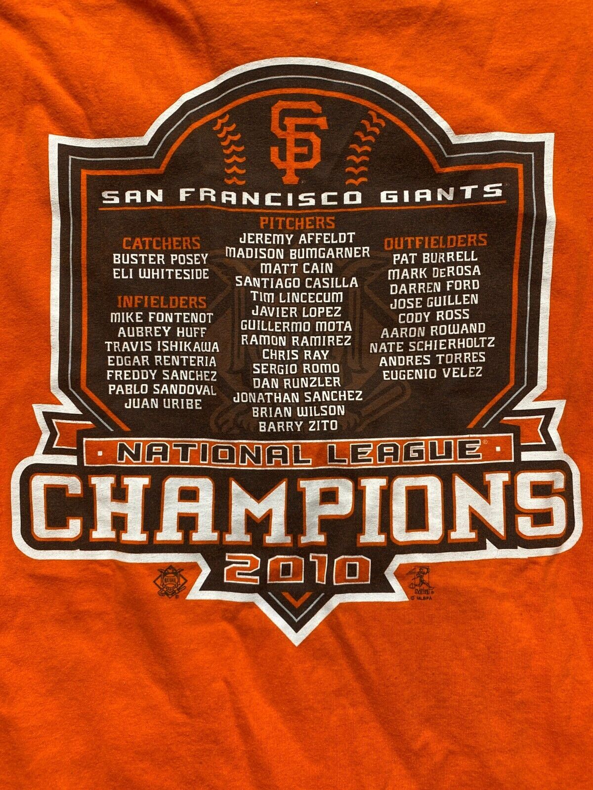 San Francisco Giants Shirt Adult 2XL XXL Orange World Series Champions MLB 2010