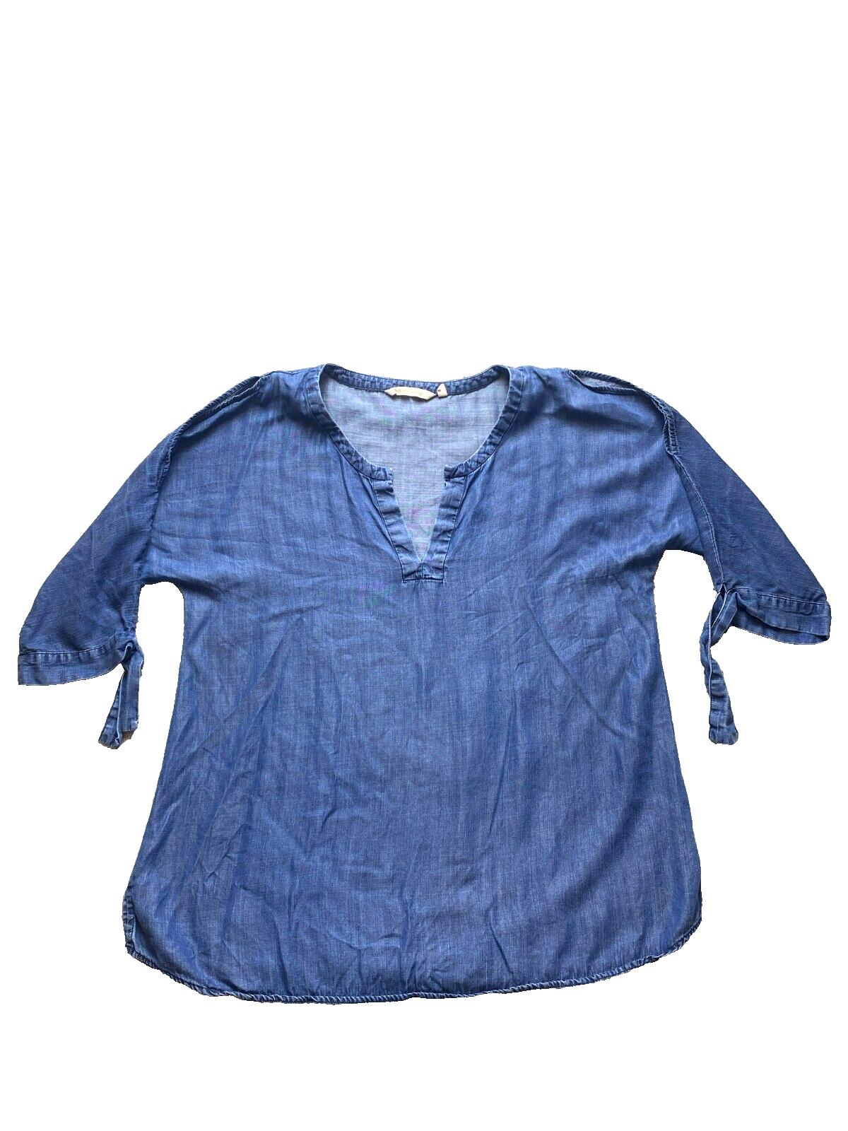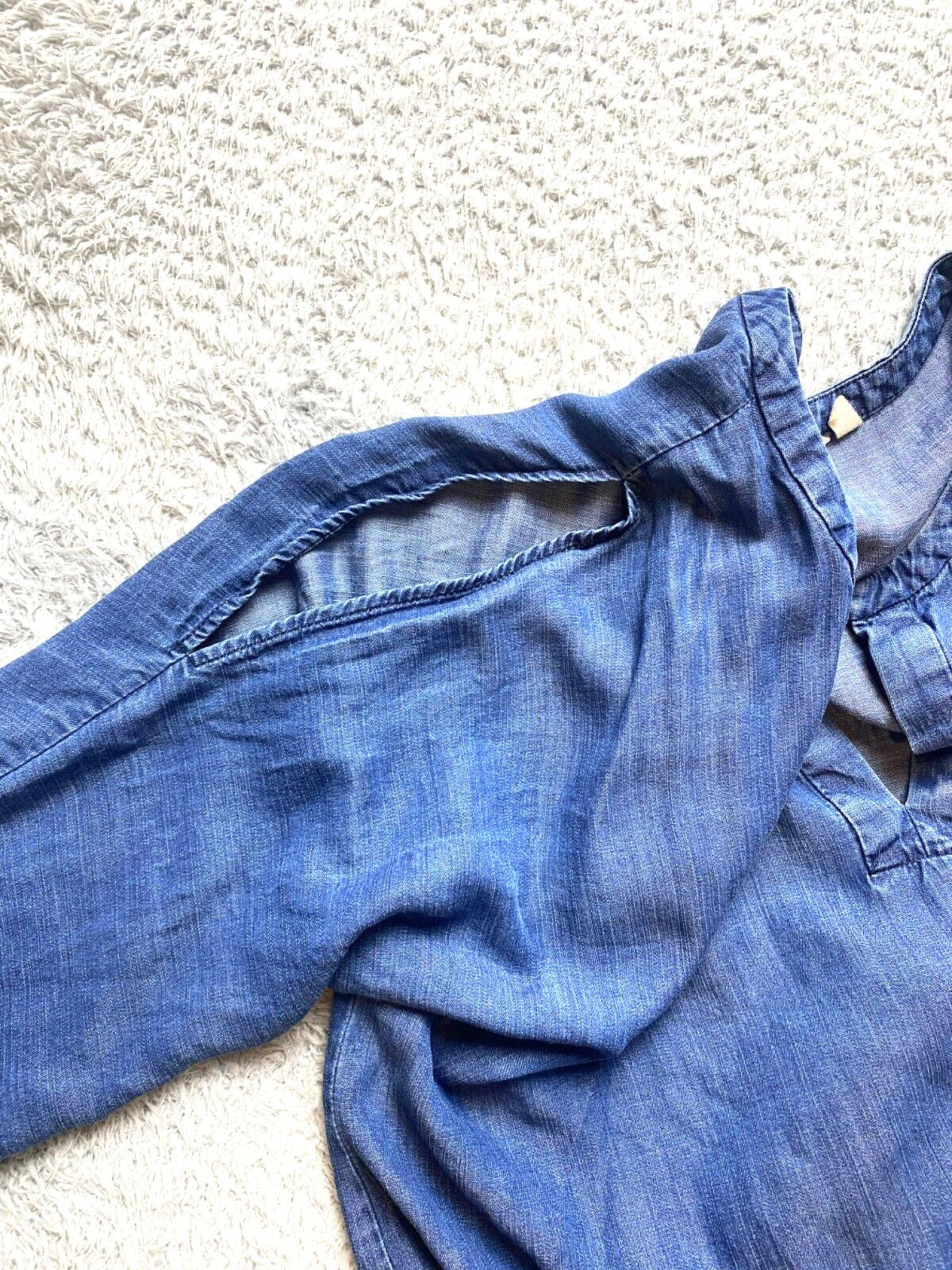 Soft Surroundings Shirt Womens Large Cold Shoulder Oversized Chambray Tencel