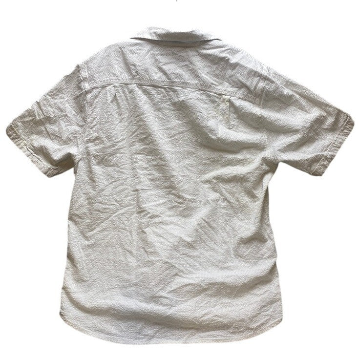 Keywords: Tommy Bahama shirt, men's camp shirt, beige shirt, short sleeve button up, casual shirt, textured shirt, beach shirt, vacation shirt, island wear, men's fashion, summer shirt, M shirt, medium shirt, button down shirt