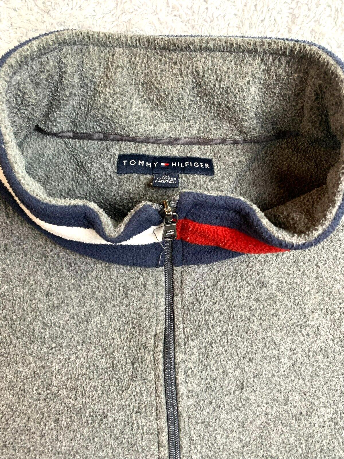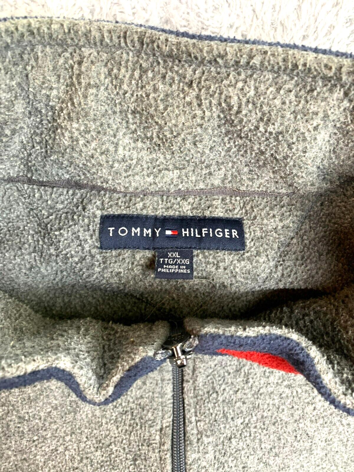 Tommy Hilfiger Jacket Adult 2XL XXL Gray Quarter Zip Fleece Spell Out Flag Mens
