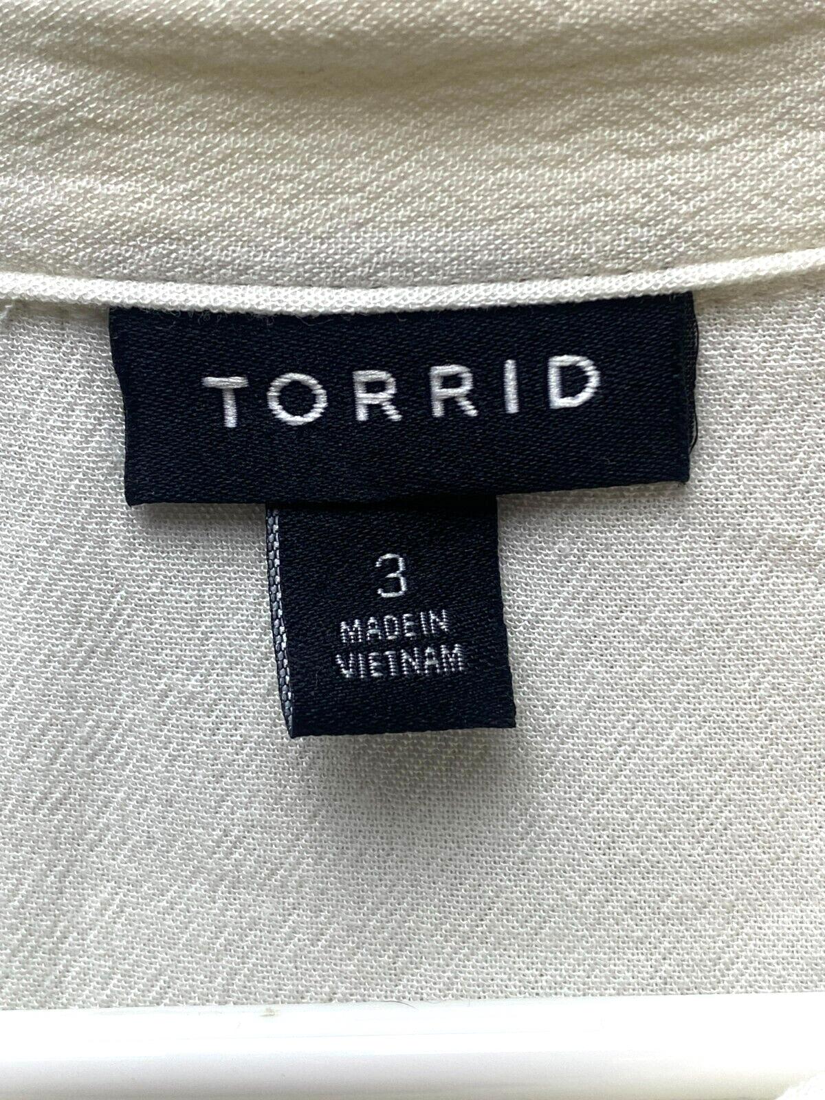 Torrid Shirt Womens 3 3X Ivory Button Up Rayon Loose Boxy Peasant Casual Plus