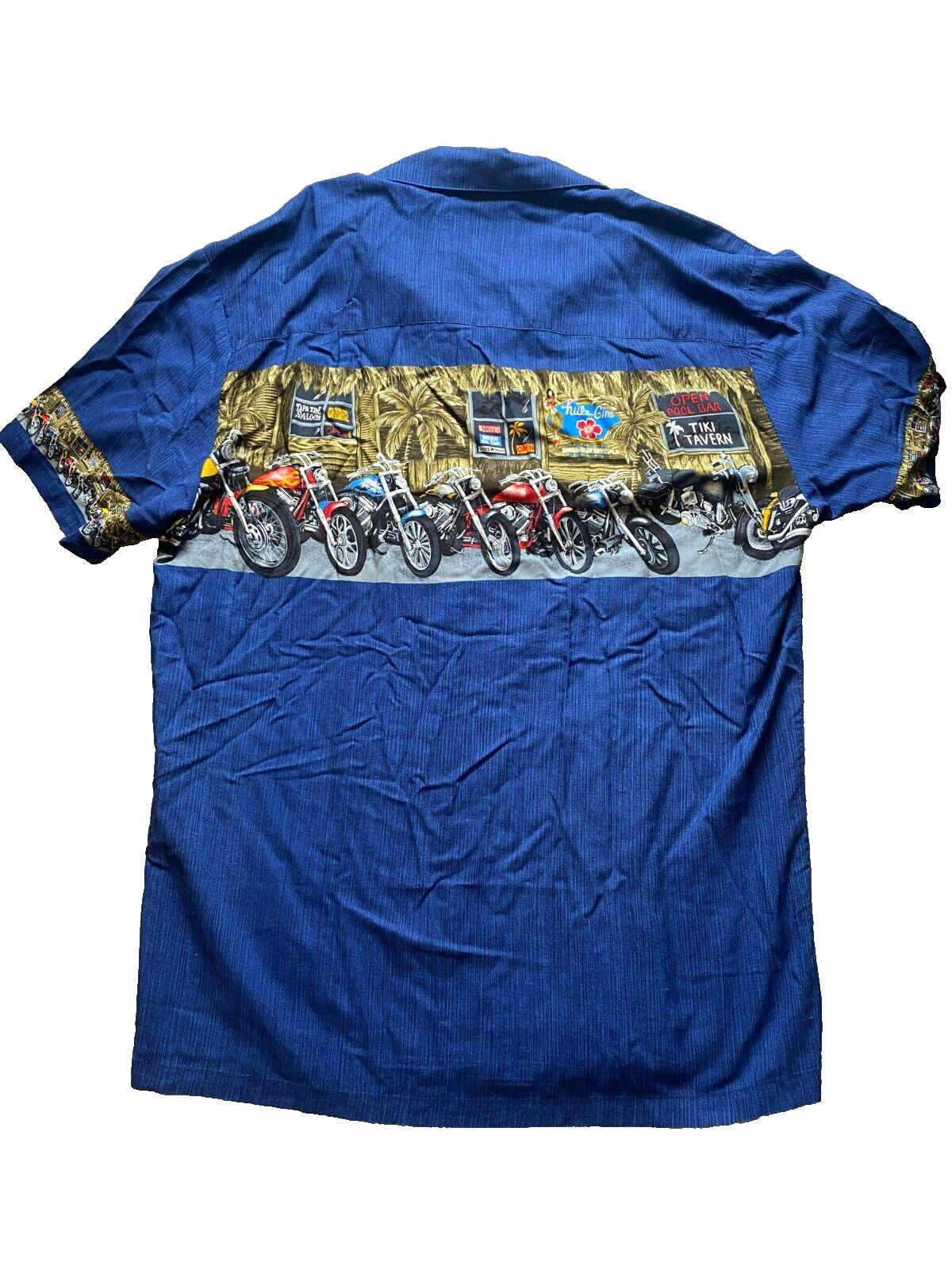 VTG Paradise Found Shirt Adult Medium Blue Hawaiian Tiki Tavern Motorcycle Mens